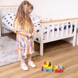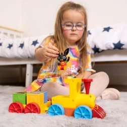 Questo set include un trenino colorato con immagini di personaggi popolari dello show per bambini Bing, che sviluppa l'immaginazione e la fine motricità dei bambini.