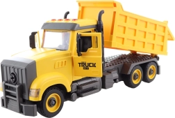 Grande e ben riuscito autocarro con cassone ribaltabile avvitabile. Alimentazione con 3 batterie AG13 incluse nella confezione. L’auto ha sul tetto 4 pulsanti con funzioni: avviamento, clacson, segnalatore acustico in retromarcia e melodia. Il cacciavite è incluso nella confezione. Le porte sono apribili, il ribaltamento è funzionante. Materiale: plastica. Confezionato in scatola aperta. Dimensioni confezione ca. 41×22×13 cm. Dimensioni del veicolo 37×14×11 cm. Età 3+.