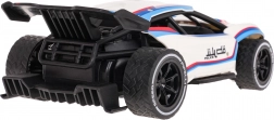 Auto RC in metallo veloce e resistente in scala 1:20 per bambini da 6 anni. Offre controllo a 2,4 GHz, alta velocità, drift, rotazione a 360°, pneumatici in gomma e sospensione anteriore. Inclusa batteria 3,7 V 500 mAh.