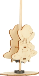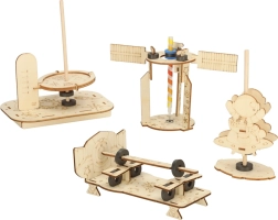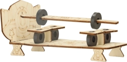 I pezzi in legno tagliati al laser combaciano senza colla e attrezzi. Durante il montaggio i bambini apprendono le basi della meccanica, degli ingranaggi e dell'equilibrio.