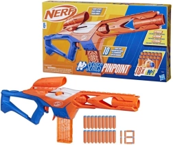 Porta le tue battaglie a un livello superiore con il blaster Nerf N Series Pinpoint. Grazie alla struttura robusta, all'ergonomia dell'impugnatura e al mirino integrato, agganci il bersaglio rapidamente e con sicurezza. Il meccanismo a otturatore garantisce un caricamento fluido e preciso, così puoi concentrarti solo sul gioco.