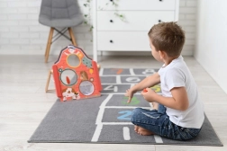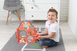 Realizzato in legno e tessuti adatti ai bambini, il gioco è adatto a bambini dai 3 anni.