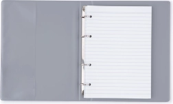 Elegante quaderno ad anelli in formato A4 nel raffinato colore grigio, con copertine in PVC resistente e meccanismo a 4 anelli. Include 100 fogli a righe, ideale per scuola, ufficio e organizzazione domestica degli appunti.