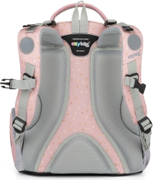 Lo zaino scolastico OXY GO Farfalla, dal design elegante, è pensato per un uso quotidiano confortevole. Dispone di schienale anatomico e traspirante e di spallacci regolabili per un corretto posizionamento sulla schiena. Grazie al fondo rigido e impermeabile, il contenuto resta al sicuro e lo zaino mantiene un aspetto pulito.