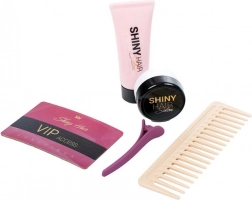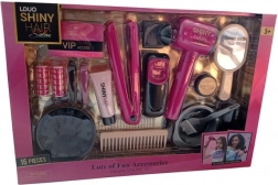 - Phon a batteria, piastra per capelli, pettine, specchietto, bigodini, mollette/clip, ciotola e pennellino per la tinta, accessori per la cura