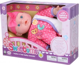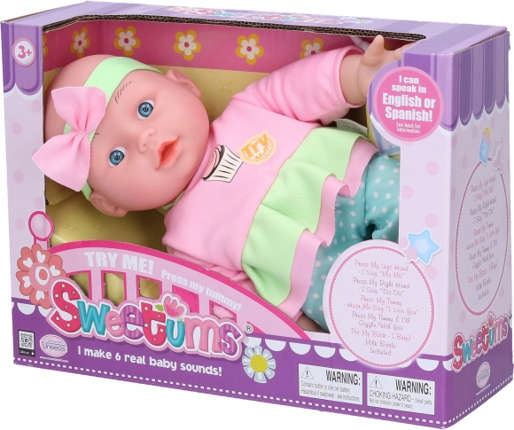 Questa bambola viene fornita con un biberon e tre batterie AG13, incluse nella confezione. Disponibile in tre diverse varianti.