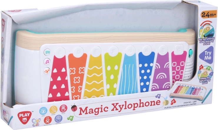 Suonare lo xilofono favorisce il senso del ritmo, la coordinazione mano–occhio e la pazienza. La modalità didattica incoraggia i bambini a seguire le indicazioni luminose e a migliorare la concentrazione. Adatto a bambini dai 12 mesi.