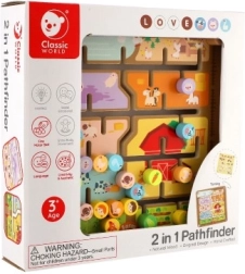 Il labirinto in legno 2 in 1 a doppia faccia del marchio CLASSIC WORLD unisce gioco e apprendimento: da un lato la fattoria con gli animali, dall’altro l’alfabeto con gli animali. I bambini allenano la motricità fine, il pensiero logico e la concentrazione guidando i piolini attraverso il labirinto fino ai posti giusti. Realizzazione in legno di qualità, dimensioni 30 × 30 cm, adatto dai 3 anni.