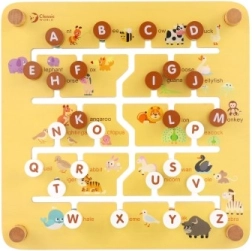 Conducete il piolino con la lettera giusta fino all’animale corrispondente. I bambini consolidano in modo naturale le forme delle lettere e ampliano il vocabolario in inglese.