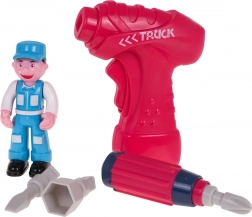 Inclusi la figurina del conducente, un trapano/cacciavite per bambini e 3 punte intercambiabili (a taglio, a croce, esagonale) per un gioco realistico da piccolo riparatore.