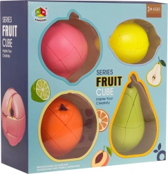 Questo set colorato comprende quattro rompicapi 3D a forma di frutti amati: mela, limone, arancia e pera. Ogni modello è composto da pezzi interconnessi che si possono ruotare e riassemblare. Dopo averli mescolati, l’obiettivo è riportare i pezzi alla forma originale del frutto: una sfida divertente per bambini e adulti.