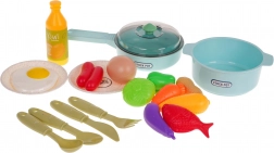 Pentola, padella, piatti, posate e una ricca selezione di alimenti finti offrono ai bambini tutto il necessario per giocare al cuoco.