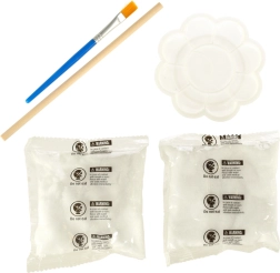 Il set completo contiene tutti gli strumenti – dal misurino e tavolozza al pennello e ai colori. Basta aggiungere acqua calda e puoi iniziare.