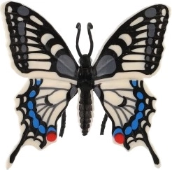Questa farfalla decorativa ispirata alla specie macaone comune (Papilio machaon) si distingue per la lavorazione precisa delle ali con motivi a contrasto in nero, bianco e blu. L’aspetto realistico dona un’atmosfera naturale alla cameretta dei bambini, allo studio o al soggiorno.