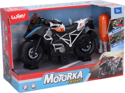 Questa moto avvitabile bianca lunga 20 cm è un ottimo giocattolo per sviluppare la motricità fine e il pensiero tecnico. I bambini possono smontarla e rimontarla da soli con il cacciavite e la chiave inclusi. Premendo la parte posteriore della moto si attivano effetti luminosi e sonori, che rendono il gioco ancora più coinvolgente.