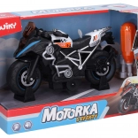 La moto è dotata di volano per una marcia fluida senza bisogno di telecomando. La confezione contiene tutto il necessario, incluse 3x batterie AG13, ed è quindi pronta all’uso immediato. Ideale come regalo e, grazie alla confezione in lingua ceca, adatta anche ai più piccoli appassionati.
