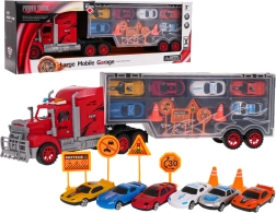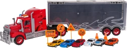 Scopri il divertimento in viaggio con il grande camion che trasporta nel semirimorchio trasparente 6 macchinine colorate e un set di segnali stradali. Le porte posteriori del semirimorchio si aprono e creano una rampa di accesso per un’uscita fluida dei veicoli. Una volta staccato, il semirimorchio si trasforma in una valigetta con manico comodo, così i bambini possono portare il loro parco veicoli ovunque.