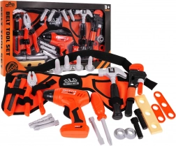 La pratica cintura porta-attrezzi per bambini tiene tutti i pezzi ben in ordine e a portata di mano. La plastica di qualità dai colori accesi e gli accessori ben studiati rendono il set una scelta ideale per i piccoli riparatori. Il trapano inerziale con 3 bit intercambiabili emette suoni e simula la rotazione, senza bisogno di batterie.