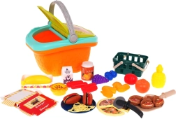 Include un grande cestino con manico e un cestino più piccolo, un’ampia selezione di alimenti in plastica (frutta, verdura, prodotti da forno, carne, dessert) e pratici accessori come piattino, paletta per pizza e rotella tagliapizza. Grazie alla struttura robusta e alla cura dei dettagli, il set è ideale per divertimento all’aperto e gioco in casa.