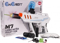 - pistola, serbatoio per palline di gel, occhiali protettivi, sacchetto con palline di gel da preparare (circa 5000 pz), batteria 7,4 V 500 mAh, cavo di ricarica USB, cacciavite, manuale d’uso