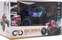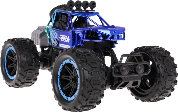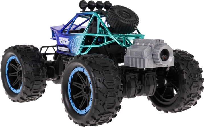 Robusto RC crawler REAL ROCK in scala 1:16 offre guida off-road, funzione fumo con effetto LED, grandi pneumatici in gomma con battistrada profondo e controllo a 2,4 GHz per una guida fluida in tutte le direzioni. Scelta ideale per bambini dai 3 anni che desiderano un'auto robusta per terreni impegnativi.