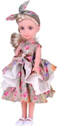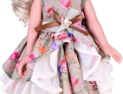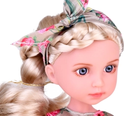 Questa affascinante bambola è la scelta perfetta per ogni piccola appassionata di moda. Con lunghi capelli biondi intrecciati in una treccia elegante, indossa un raffinato abito floreale adornato da balze, completato da una fascia floreale e scarpette bianche. Lo stile complessivo è semplicemente mozzafiato!