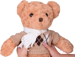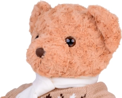 L'orsetto indossa un elegante maglione alla moda e una sciarpa color crema, che ne esaltano il fascino e lo preparano alle avventure invernali. È il compagno di giochi perfetto e diventerà un fedele amico per bambini e adulti. Un regalo perfetto per ogni occasione!