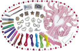 Questo set artistico completo è ideale per piccole appassionate di moda e per tutti i bambini che amano creare e indossare i propri gioielli. Nella confezione trovi tutto il necessario: dai ciondoli in metallo e i lacci in pelle sintetica agli strass, glitter, colla e un pratico “albero portagioie” in cartone per esporre le creazioni finite.