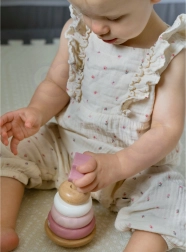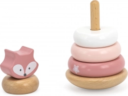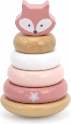 Tonalità pastello accattivanti e il pezzo superiore a forma di volpe invogliano i bambini a impilare e a imparare colori e dimensioni.