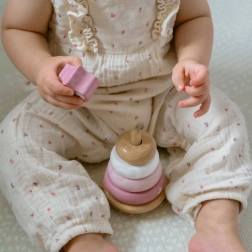 I pezzi, sicuri e finemente levigati, si adattano alle mani dei bambini e la struttura in legno è ecologica e resistente. La piramide è perfetta per le prime torri e offre un divertimento tranquillo e significativo senza schermi.