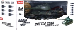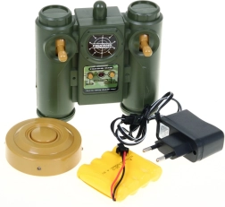 | Il carro usa una frequenza di 2,4 GHz, consentendo a più giocatori di guidare contemporaneamente. Il carro è dotato di ottimi effetti sonori e luminosi. È alimentato da batteria ricaricabile. Batteria e caricabatterie per il carro sono inclusi nella confezione. Acquista carri in colori diversi e potrai organizzare una grande battaglia, inclusa una Grande battaglia tra carri armati, a cui può partecipare chiunque indipendentemente dall’età. La torretta girevole è dotata di cannone con sistema a infrarossi. Dopo aver mirato e sparato con precisione verso l’altro veicolo, sentirai un suono realistico del bersaglio colpito. La conferma del colpo spegne una delle quattro luci sul carro nemico. Dopo quattro colpi, il veicolo nemico sarà immobilizzato per 15 secondi! La battaglia è vinta e puoi iniziare una nuova partita dall’inizio. Il telaio cingolato imita perfettamente la guida di un carro reale. I comandi intuitivi non creano difficoltà e si imparano facilmente dopo pochi tentativi. Il veicolo supera ostacoli fino a 3 cm di altezza. Realistico rinculo del veicolo durante il tiro: quando spara con il cannone, si comporta sul campo di battaglia come un vero carro. Ha un portello apribile sulla torretta, in cui possiamo posizionare il carrista con mitragliatrice. Controlli: il veicolo può andare avanti, indietro, girare a destra e a sinistra e ruotare sul posto proprio come un vero carro. - portata fino a ca. 40 metri, - tempo di ricarica ca. 4 ore, - velocità massima fino a ca. 6 km/h, - il carro può ruotare di 360 gradi, inoltre la torretta comandata a distanza ruota fino a un massimo di 320 gradi. - la canna, posizionata nella parte superiore del carro, si muove su e giù. Effetti sonori: - suono del motore, - suono dello sparo del cannone. Effetti luminosi: - fari anteriori del veicolo accesi, - indicatore elettronico di potenza sulla parte posteriore del veicolo. | |