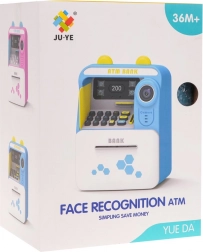 Bancomat interattivo per bambini – salvadanaio con imitazione del riconoscimento facciale insegna ai bimbi calcolo, valore del denaro e risparmio. Dispone di bordi arrotondati sicuri, display digitale, effetti sonori e voce in inglese. Si attiva inserendo una carta di pagamento fittizia e offre deposito, prelievo, controllo del saldo e cambio PIN. Per bambini dai 3 anni.
