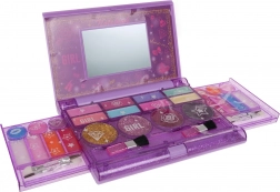 - astuccio pieghevole con specchietto, 8× ombretti, 14× lucidalabbra, 6× pennello, 2× smalto per unghie con glitter, adesivi per unghie, unghie finte, separatore per dita