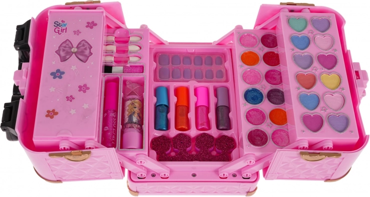 - Valigetta, 12× ombretto, 12× gloss per labbra, 12× unghia finta, 4× smalto glitterato per unghie, separa-dita, 4× pennellino, rossetto, gloss per labbra, 3× cipria, specchietto
