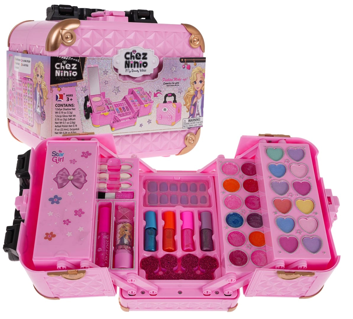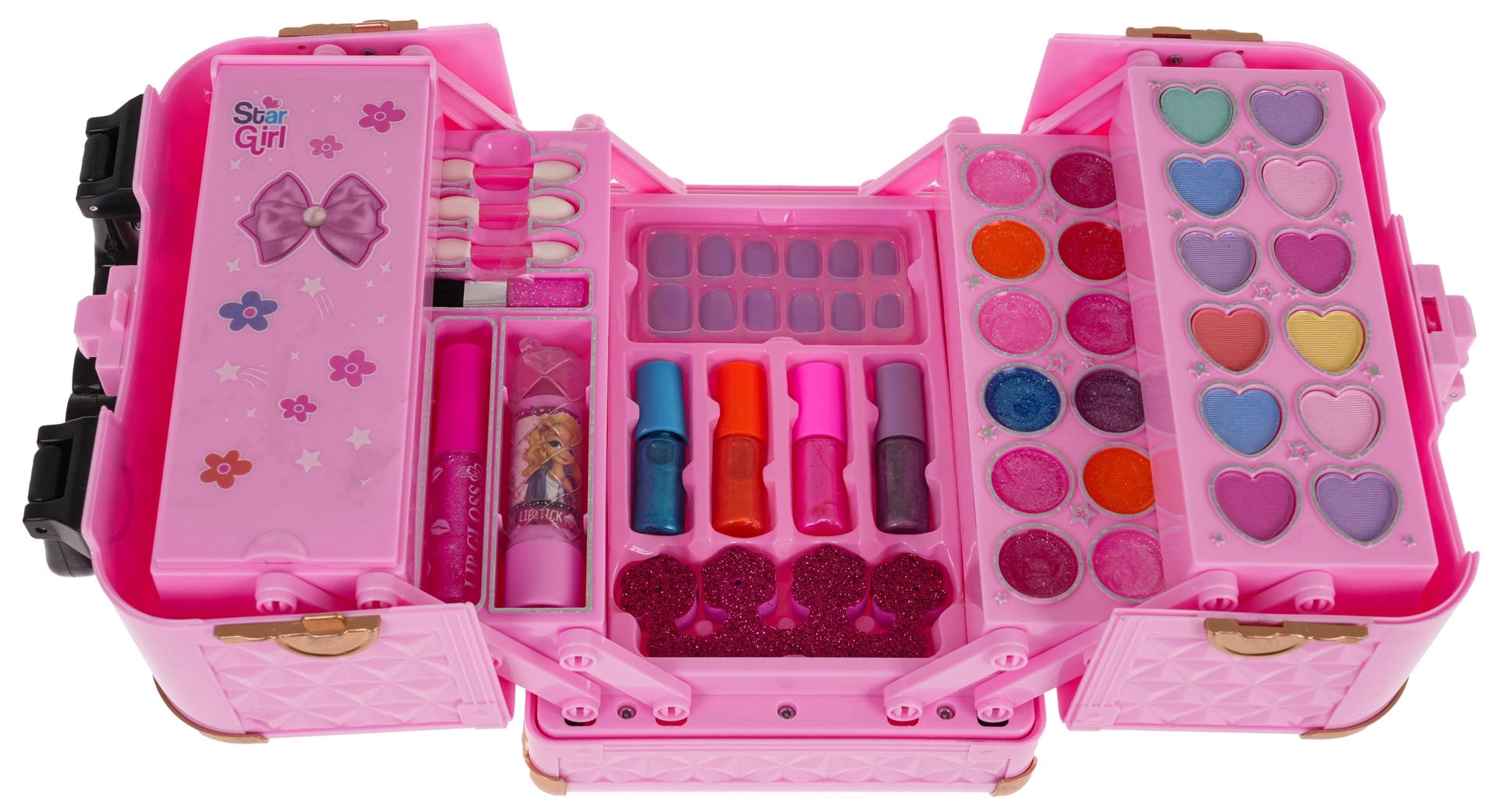 - Ricca dotazione tra cui ombretti, gloss, rossetto, ciprie, smalti e accessori.