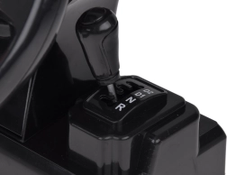 Il volante è dotato dei pulsanti START, STOP, DEMO e MUSIC, che rendono il gioco ancora più divertente. La modalità DEMO con illuminazione colorata mostra la guida avanti e indietro, mentre la leva permette di selezionare D1 (guida veloce), D2 (guida molto veloce), N (folle) e R (retromarcia). L’auto ha la convergenza delle ruote regolabile per maggiore stabilità.