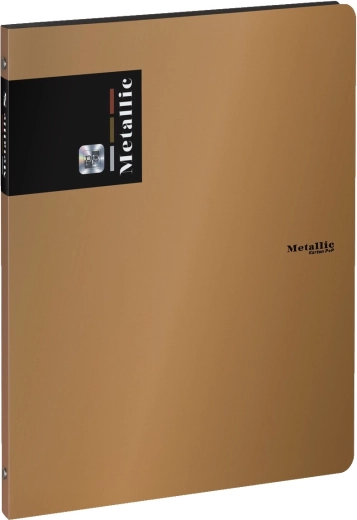 Raccoglitore in polipropilene con finitura metallica rame dotato di meccanismo a 4 anelli, ideale per organizzare i tuoi documenti.