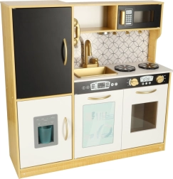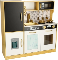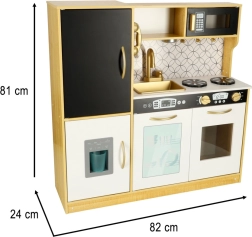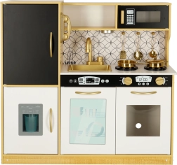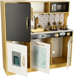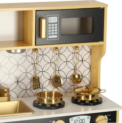 La cucina in legno del marchio LULILO è un eccellente strumento educativo, che sostiene lo sviluppo dell'immaginazione e delle abilità manuali dei bambini. La cucina è dotata di molti elettrodomestici funzionali, come frigorifero con fabbricatore di ghiaccio, forno, lavastoviglie e microonde, rendendola un luogo preferito per giocare a fare i grandi e fare festa con bambole e genitori. Grazie all'illuminazione efficiente, crea un'atmosfera autentica.