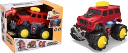 Il fuoristrada con effetti da 15,5 cm offre tantissimo divertimento grazie agli effetti luminosi, sonori e di movimento attivabili premendo i pulsanti. Il controllo è semplice tramite il pulsante sul tetto e i pulsanti laterali (suono del motore, musica, marcia avanti e indietro) e grazie alle 3× batterie AAA incluse nella confezione è pronto a partire subito.