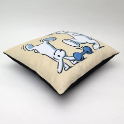 Morbido cuscinetto con i conigli BOB A BOBEK e un motivo con manubri che farà felici i bambini a casa e in viaggio. Microvelluto, fibra cava, lavaggio a 30 °C, lavorazione artigianale nella Repubblica Ceca, dimensioni 30 × 30 cm.