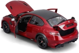 Grazie agli elementi apribili puoi dare uno sguardo all’abitacolo e al vano motore; le ruote in gomma con pinze freno ben visibili sottolineano il carattere sportivo. L’emblema Quadrifoglio – il quadrifoglio verde – richiama il pedigree da corsa e prestazioni al top.