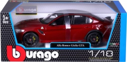 Scopri il modello in metallo di alta qualità ALFA ROMEO GIULIA GTA nel raffinato rosso metallizzato. La serie BBURAGO 1:18 Plus offre proporzioni realistiche, dettagli di carrozzeria nitidi e l'atmosfera sportiva di un'auto celebre per leggerezza, prestazioni e sterzo preciso. Il modello si distingue per le linee aerodinamiche, le pinze freno gialle e l'evidente spoiler posteriore.