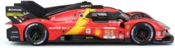 L’iconico prototipo FERRARI 499P nell’eccellente interpretazione di BBurago offre una realizzazione realistica che esalta il DNA da corsa dell’auto: linee marcate, alettone posteriore, prese d’aria e precise repliche dei loghi degli sponsor. Le parti in metallo sono abbinate a dettagli in plastica per la massima fedeltà all’originale.
