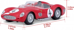 Scopri una leggenda del motorsport in una realizzazione accurata. Questo modello con licenza FERRARI 250 TESTA ROSSA in scala 1:43 offre dettagli realistici come ruote a raggi, scarichi laterali, parabrezza trasparente e numeri di gara. Perfetto per la vetrina o come regalo per gli amanti delle auto da corsa classiche.
