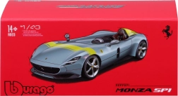 Elegante modello da collezione in scala 1:43 che farà felici gli appassionati del marchio FERRARI. Realizzazione in metallo, dettagli realistici e ruote liberamente girevoli rendono questa auto perfetta sia per l'esposizione che per il gioco. Il modello Ferrari Monza SP1 in finitura argento con strisce gialle colpisce per la lavorazione precisa, proporzioni bilanciate e linee fedeli della carrozzeria.