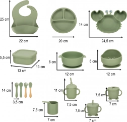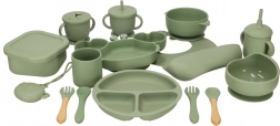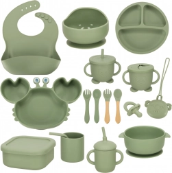 Questo set di stoviglie verde in silicone da 19 pezzi è progettato pensando alla sicurezza e al comfort dei vostri bambini. Grazie al silicone resistente e privo di sostanze nocive, questi prodotti sono ideali per le delicate bocche dei bambini. Il colore e il design rendono ogni momento del pasto divertente e promuovono lo sviluppo delle abilità manuali.