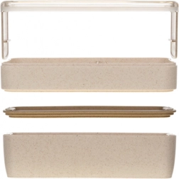 Il Lunchbox Ruhhy offre una soluzione portatile ideale per i tuoi pranzi e spuntini quotidiani. È realizzato con materiali ecologici, in particolare con paglia di grano, che garantisce resistenza e facilità di manutenzione. La sua struttura leggera è perfetta per un trasporto comodo.