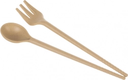 Incluso un set di posate ecologiche che comprende cucchiaio e forchetta con bordo ondulato.