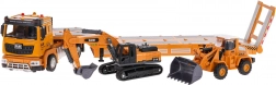 Il set di veicoli da costruzione con semirimorchio staccabile è il giocattolo ideale per ogni piccolo costruttore. Design realistico e funzionalità dei veicoli contribuiscono a sviluppare l'immaginazione e la motricità dei bambini.
