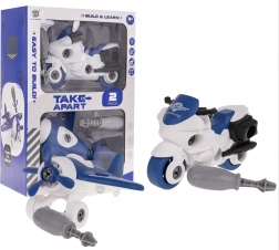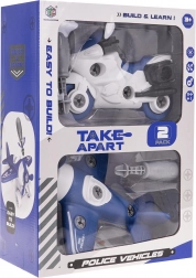 Il set smontabile include una motocicletta e un aereo insieme a due cacciaviti che consentono ai bambini di smontare i veicoli nei singoli pezzi e poi rimontarli. Inoltre, possono costruire una nave seguendo l'istruzione illustrata.